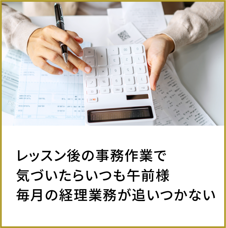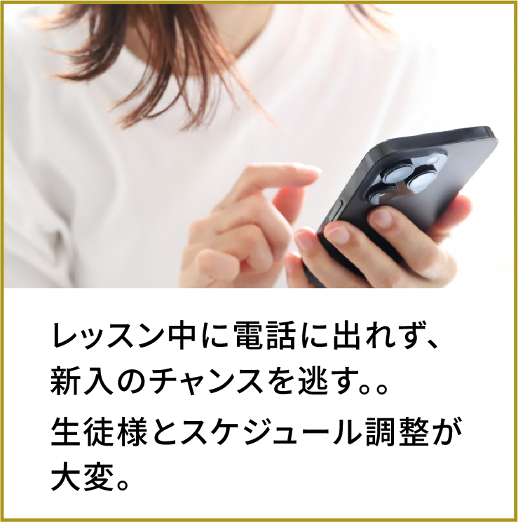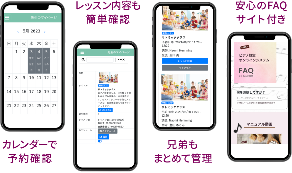 このシステムを取り入れる前は、手書きのスケジュール帳で管理をし、レッスン中にお月謝の回収を行なっており、体験レッスンや振替レッスンのやりとりなど、いつも事務作業に追われていました。